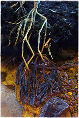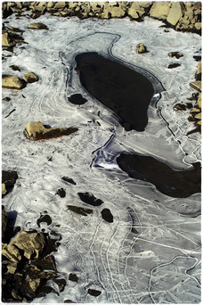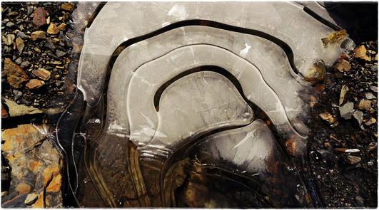 Few things about the adventure… first, the rainbow waterfall. I could see it a way off, attracted by whole spectrum of the rainbow refracted in its spray. Photo could not possibly capture its illusory splendour due to limitations of the device but I took it anyway. I pitched my camp nearby and drank from the same stream. Cayesh is an adjacent valley to Quillawanca and nobody generally goes there, apart from random cows. I woke up at 4 am and found water in my billy as well as the whole creek thoroughly frozen. I walked up towards the glacier in the dark and climbed up a creek with yellow and red mineral deposits by the light of the headtorch until it was light enough to start snapping pictures of ice puddles with intricate drawings created by the frost during the night and destined to disappear with first rays of sun. Several times I witnessed it happen in front of my eyes… just like that, the puddle is flushed from underneath when temperature changed ever so slightly and white background becomes transparent, rendering lines drawn upon it invisible.